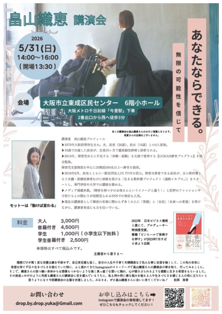 畠山織恵講演会スケジュール【随時更新】